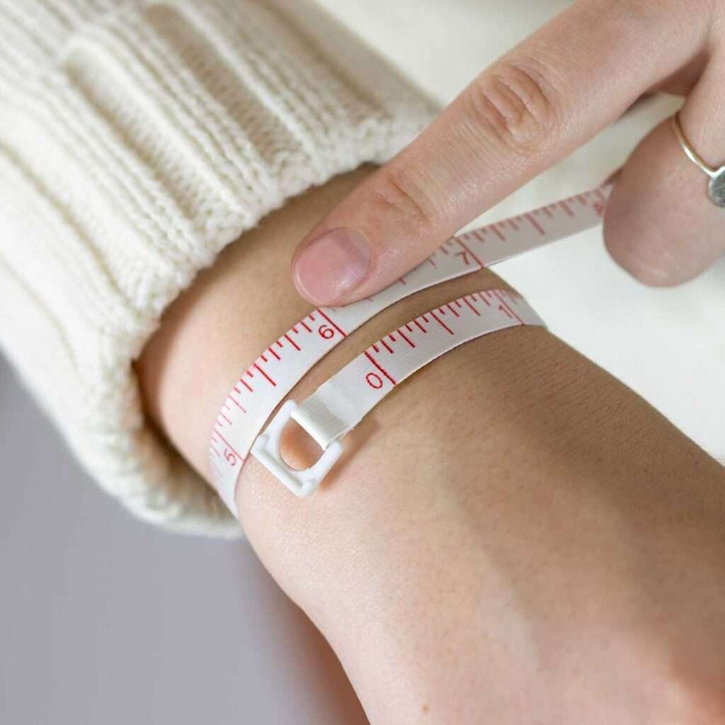 • 使用軟尺: 將軟尺緊貼在手腕最細的地方(通常是腕骨上方),環繞一圈,確保軟尺不會太鬆或太緊。 記錄軟尺上的刻度數字。